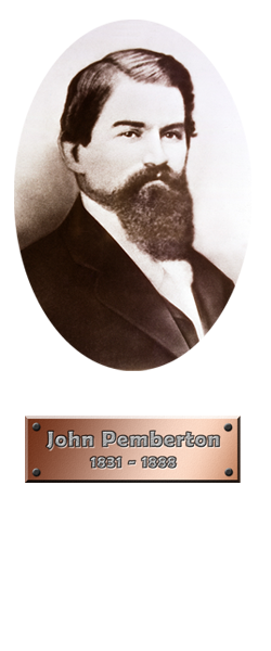 l’un des meilleurs médecins qu’Atlanta n’ait jamais connu. Le Dr. Pemberton prend part à la guerre de Sécession et manque d’être tué pendant son service lors d’une manœuvre à Columbus. A la fin de la guerre, il rentre chez lui en héros. Il est malheureusement blessé à la jambe et souffre terriblement. Mais cet événement lui confère une nouvelle mission ! Avec ses connaissances de médecin et de pharmacien et à cause de ses douleurs permanentes à la jambe, le Dr. Pemberton entreprend de créer une nouvelle boisson, qui serait à la fois rafraîchissante et dynamisante. Chaque jour, il parcourt le port de commerce de Savannah, en Géorgie, à la recherche des meilleurs extraits végétaux. Puis, un jour de mai 1886, dans son laboratoire, il crée le premier mélange de ce qui deviendra la boisson la plus rafraîchissante du monde : Coca-Cola. |